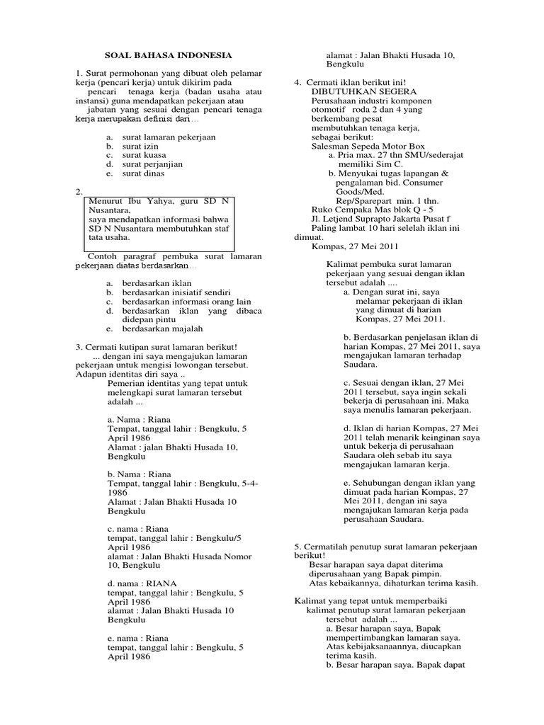 Tuliskan paragraf pembuka surat lamaran pekerjanan berdasarkan iklan !. Maybe you would like to learn more about one of these? Check spelling or type a new query. We did not find results for: